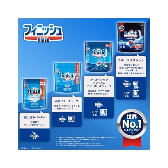商品名:Finish 食洗機 洗剤 フィニッシュ タブレット パワーキューブ 100個入 ×3 袋 + 試供品付き (オールインワン プレミアム パワーボールキューブ 3個入) 【.co.jp 限定】