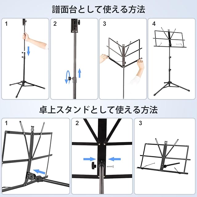 【耐久性に優れ】楽譜スタンド全体は鉄とアルミ合金でできており、錆びにくく、強くて耐久性があります。