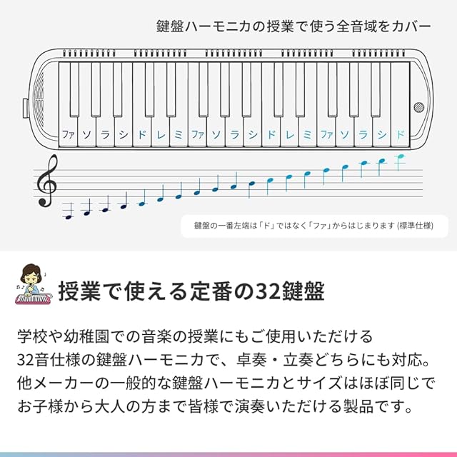保育園・幼稚園や小学校の音楽の授業で使える定番音域の「32鍵盤ハーモニカ」