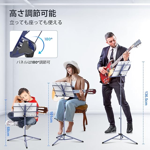 New Bee 譜面台 折りたたみ式 楽譜スタンド 高さ70~135cm 調節可能 楽譜立て 収納袋付き ブルー MS21