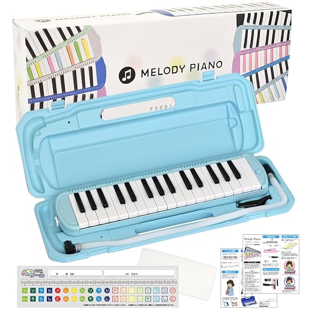 商品名:KC キョーリツ 鍵盤ハーモニカ メロディピアノ 32鍵 ライトブルー P3001-32K/UBL (ドレミ表記シール・クロス・お名前シール付き)