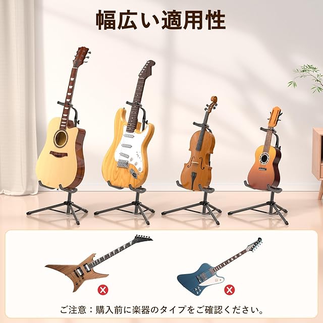 商品名:New Bee ギタースタンド 折りたたみ式 高さ75-87cm 調整可能 転倒防止ゴム付 GH02