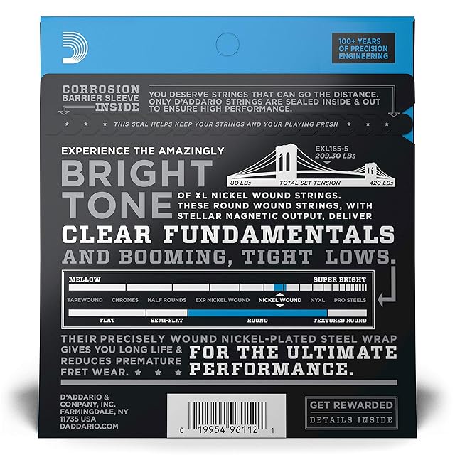 商品名:D'Addario ダダリオ ベース弦 ニッケル Long Scale 5弦 .045-.135 EXL165-5 【国内正規品】