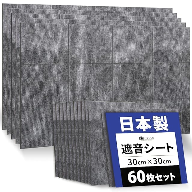 ✅【 商品詳細 】 セット内容:遮音シート60枚 素材:高比重物質配合軟質塩ビ樹脂シート/片面不織布貼り(難燃性)サイズ:30cm×30cm 重さ:1枚190g 厚み:1.2mm 面密度:約2.1kg/m3 周波数1000Hz時音響透過損失19dB