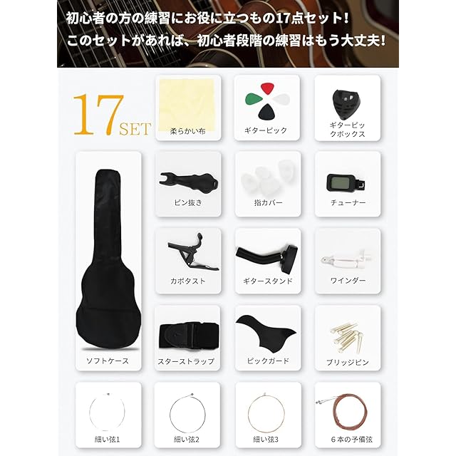 アコースティックギター 17点セット 初心者入門セット 練習ギター 初心者 ソフトケース付き ギター アコギ guitar