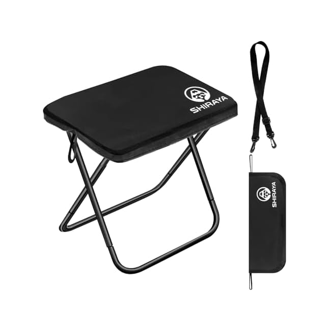 shiraya【2025Newモデル】折りたたみ椅子 アウトドアチェア コンパクト 超軽量 アルミ合金 ショルダー付き 持ち運び便利 収納袋一体型 携帯チェア キャンプ 椅子 日本語説明書付き ハイキング 釣り(ブラック)