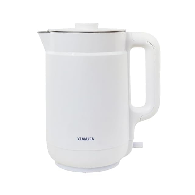 [山善] 電気ケトル 電気ポット 1.5L 大容量 一人暮らし 二人暮らし 自動電源OFF 空焚き防止機能 ふた取り外し可 ワンタッチ操作 2重構造 ホワイト YKPA-1215(W)