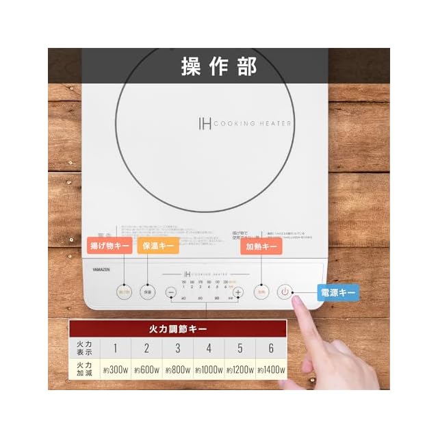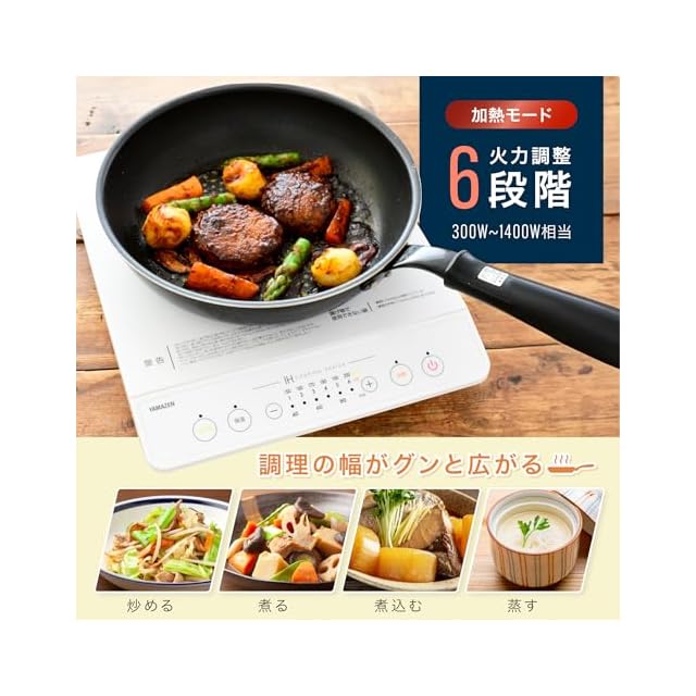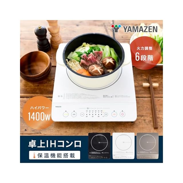 商品名:[山善] IHコンロ IHクッキングヒーター 卓上 小型 一人暮らし 二人暮らし 1400W 高火力 火力調整6段階 保温 IH調理器 マグネットプラグ仕様 ホワイト YEN-S140(W)