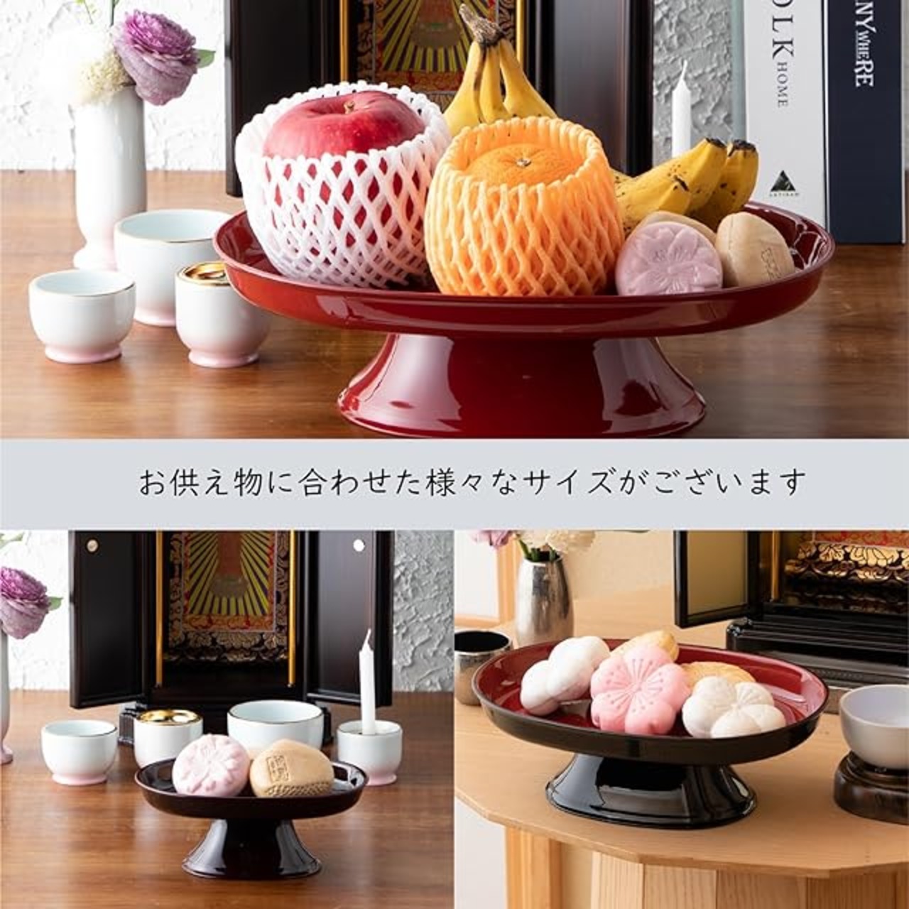 サイズのバリエーションも豊富なため、自分の家の仏壇にあったサイズ感をお選びいただけます。フルーツや和菓子などサイズに合わせていろいろなものを置くことができます。