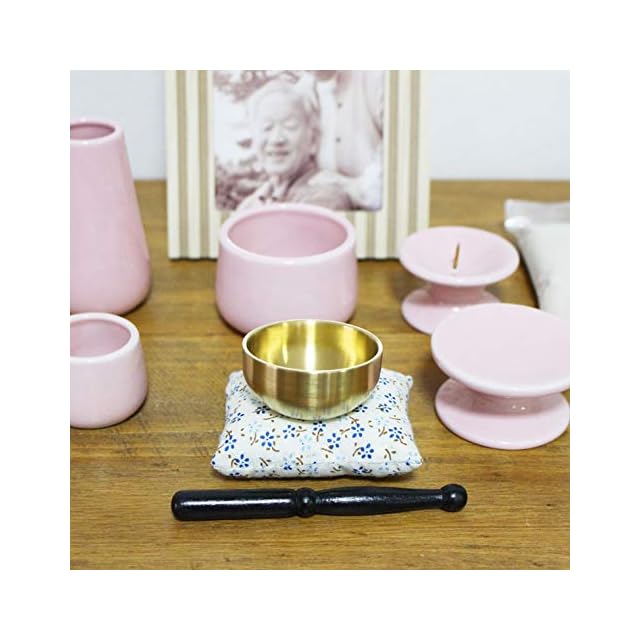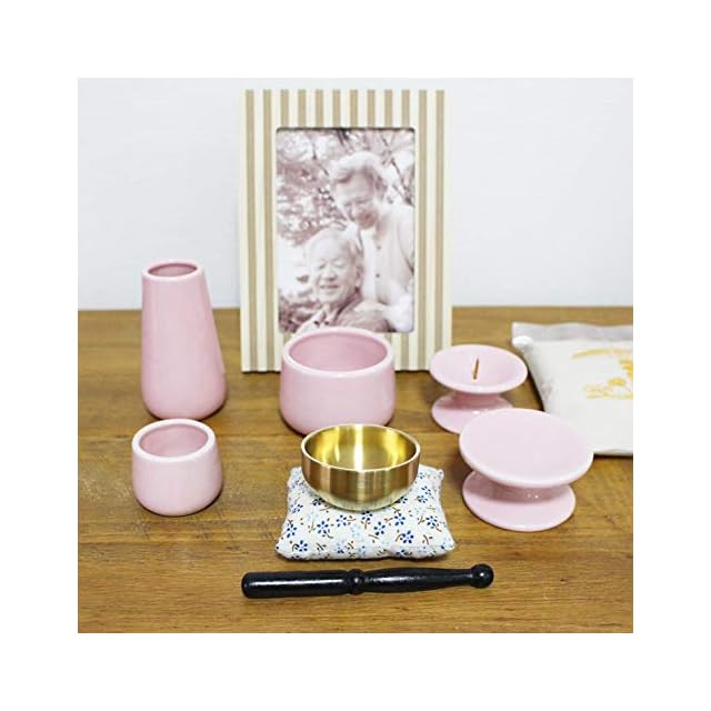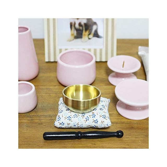 ミニ 仏具 7点セット おりん(こりん) 香炉 香炉灰 ローソク立て 花瓶 湯呑 供物台 ピンク