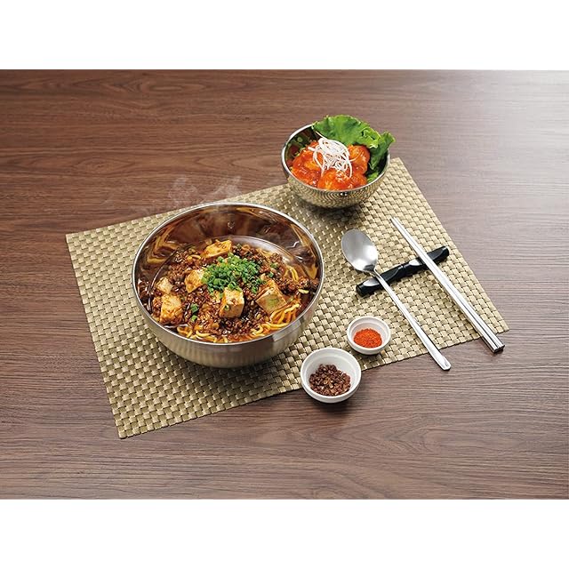 商品名:カクセー ステンレス どんぶり 4点セット スプーン 箸 オールステンレス 中空二重構造 熱くなりにくい 結露しにくい 軽量タイプ HOL-04 シルバー