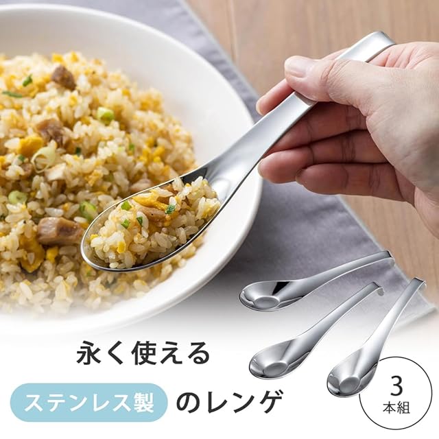 商品名:下村企販 中華 レンゲスプーン 3本組 【日本製】 食洗機対応 引っかけられる 割れない ラーメン チャーハン 丼もの すくいやすい ステンレス 燕三条 45699