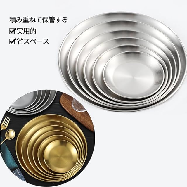 Desirable ステンレス 丸皿 小皿 大皿 ディナープレート ステンレストレイ 丸型 (26cm, ゴールド 3枚セット)
