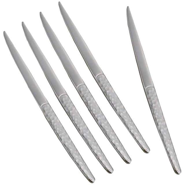 下村企販 和菓子ナイフ 5本組 【日本製】 食洗機対応 全長12cm 和菓子やフルーツのカットに 挿して食べられる 槌目模様 洗いやすい 和菓子の友 ステンレス 燕三条 11566