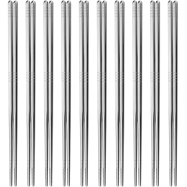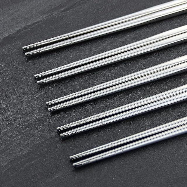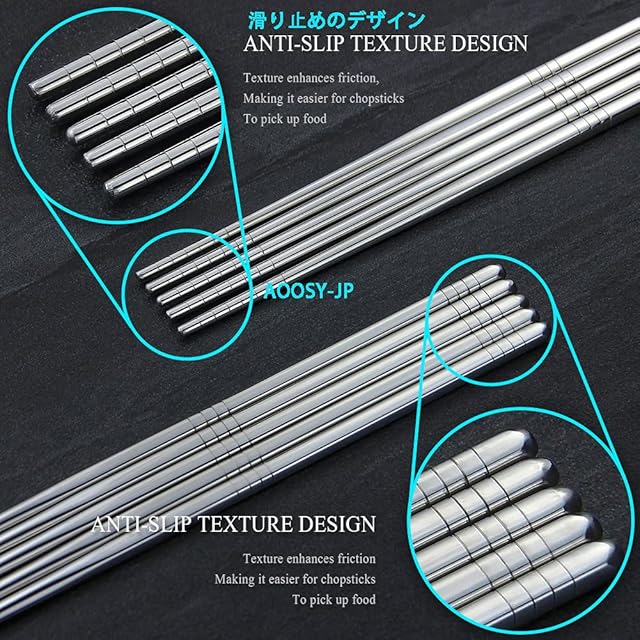 AOOSY 箸 10膳セット 24cm ステンレス 韓国 金属 真空箸 軽い お箸 韓国食器 自社工場で製造 鏡面仕上げ 食洗機対応 四角形柄 滑り止め加工 洗いやすい シルバー 業務用 アウトドア用箸 金属箸 カトラリー