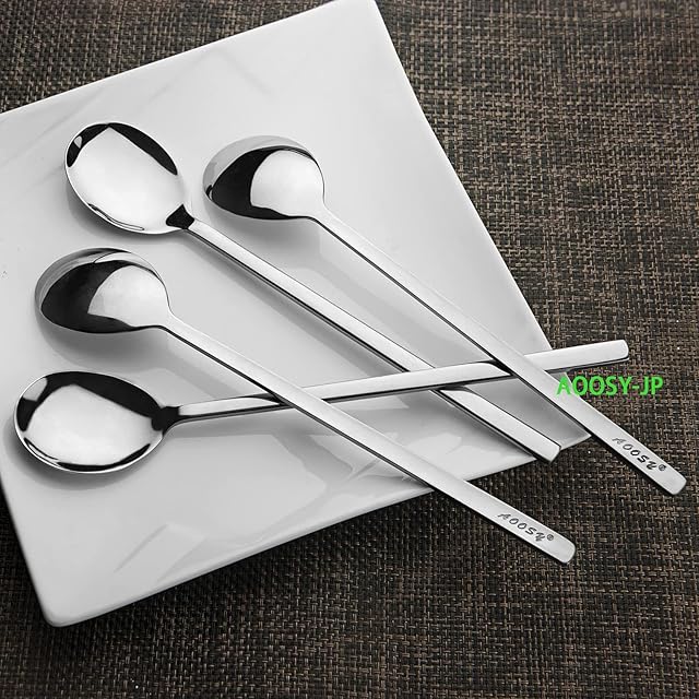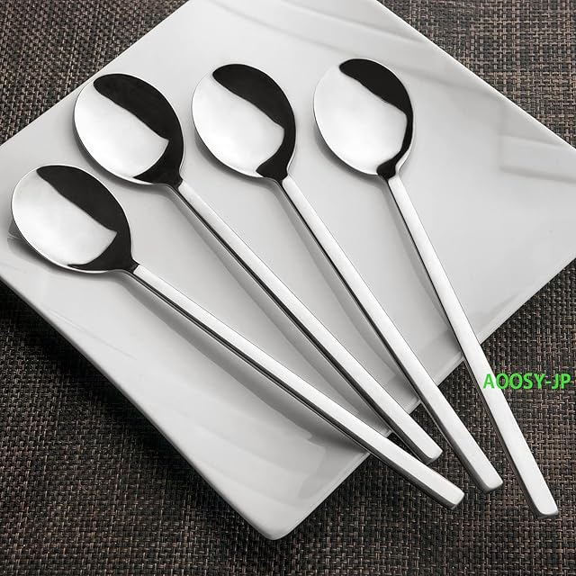 商品名:AOOSY スプーン 箸 4人用8点セット 食洗機対応カトラリーセット 四角形柄 韓国食器 ステンレス鋼製 鏡面仕上げ シルバー 軽いお箸 中空箸 来客用箸 業務用