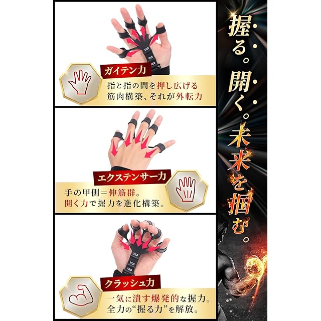 ✅【握力×ストレッチで、鍛える&癒す】 パワーフィンガーは、指・手首・前腕の筋力強化に加え、トレーニング後の“リラックス効果”もサポート。 選べる強度レベルで、目的に合わせた効果的なトレーニングが可能。 指のストレッチから本格的な握力強化まで、これ一つで幅広く対応。 ──ただ鍛えるだけじゃない。整えて、癒して、パフォーマンスアップへ。