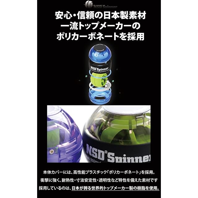 【手首、指、腕を鍛える専用の器具NSDスピナー初級 エクササイズ用】 <br> <br> NSDスピナーは世界中で愛され使用されており、本格的なアスリートから一般の方まで使用出来るスポーツ器具です。 <br>20年以上もの歴史の中で生み出されたハイテク技術により、現代のトレーニングにマッチしたジャイロエクササイズマシンの唯一のメーカー商品です。 <br> <br> 回転数が上がるほど遠心力が増していき、重みも増してきます。手首や腕、指の筋力増加のための運動器具として非常に高い効果が期待出来ます。 <br> <br> オートスタートモデル <br> <br> 紐なしでスタートが出来る初級用スピナー。親指でボールを回して放すだけです。常にヒモを気にする必要はございません。 <br> スタートが苦手な人,持ち運びに手軽さを感じたい人にはおすすめです。 <br> <br>腕のダイエットにも有効です。 <br> 重たいダンベルなどの器具を使用するより、はるかに安全でそして筋肉に過度な負荷をかけずにすみます。 <br> パワースピナー正規品は他の製品と違い、精密に設計された最高品質のノン・インパクト(非衝撃)トレーニング/リハビリツールです。 <br>比べていただくとその違いに驚かれることでしょう。安心してお買い求め下さい。 <br> <br> たった5分、テレビを見ながら腕、手首の筋力、握力のアップを目指しましょう。 <br> このNSDスピナーを使用して、快適なトレーニングをお楽しみ下さい。