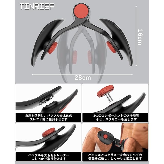 TINRIEF 内転筋トレーニング器具:人間工学に基づいて新たに開発・改良された、進化版トレーニング器具のご紹介です!本製品は、張力を16kg(約36ポンド)までアップグレードし、耐荷重46ポンドのレジスタンスプレートを搭載。オリジナルモデルを基に、アジア人の骨格特性を徹底的に研究し、日本人の体型にフィットするよう設計されています。この高い耐荷重性能により、女性・男性を問わず、幅広い年齢層やフィットネス初心者、ワークアウトを始めたばかりの方にも安心してご使用いただけます。ぜひ、自分にぴったりのトレーニングパートナーとしてお選びください!