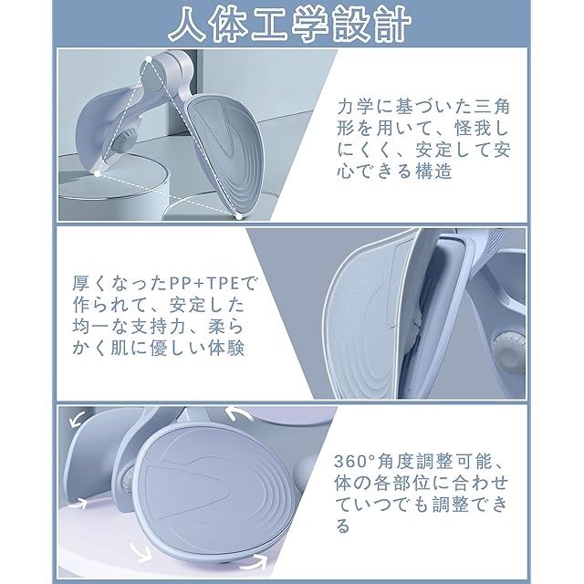 全方位トレーニングに対応!産後の体型ケア、ダイエット中の引き締め、長時間の座り姿勢による骨盤前傾、運動不足による筋力低下や体力の衰えなど、さまざまなお悩みに応えるトレーニング器具です。ぜひ安心してお試しください!本ないてんきんトレーニング器具は、アジア人、特に女性の体型と健康を意識して設計されており、ボードは360°回転可能な構造により、太もも、背中、腕、ハムストリング、手首など、体の各部位に合わせて自在に角度調整が可能です。多彩なトレーニング方法で、気になる部位をしっかり強化できます。正しい運動習慣を通じて、猫背姿勢の改善、背中の痛みの緩和、体幹の強化に加え、便秘・尿漏れ・骨盤のゆるみなどの不快な症状の予防・改善も期待できます。※詳しい使い方や効果については、日本語取扱説明書をご覧ください。