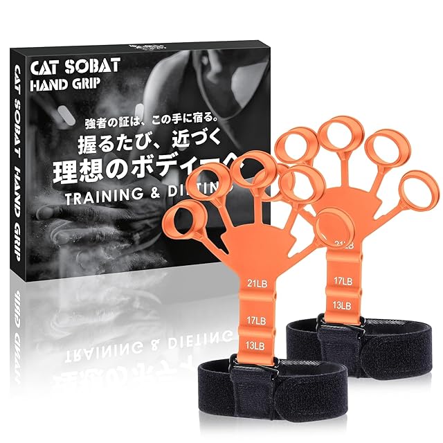商品名:Catsobat ハンドグリップ パワーフィンガーグリップ 2個セット 指トレ 握力 トレーニング 人間工学に基づいたデザイン 【メーカー30日付き】 (オレンジ)