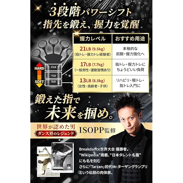 ✅【握力×ストレッチで、鍛える&癒す】 パワーフィンガーは、指・手首・前腕の筋力強化に加え、トレーニング後の“リラックス効果”もサポート。 選べる強度レベルで、目的に合わせた効果的なトレーニングが可能。 指のストレッチから本格的な握力強化まで、これ一つで幅広く対応。 ──ただ鍛えるだけじゃない。整えて、癒して、パフォーマンスアップへ。