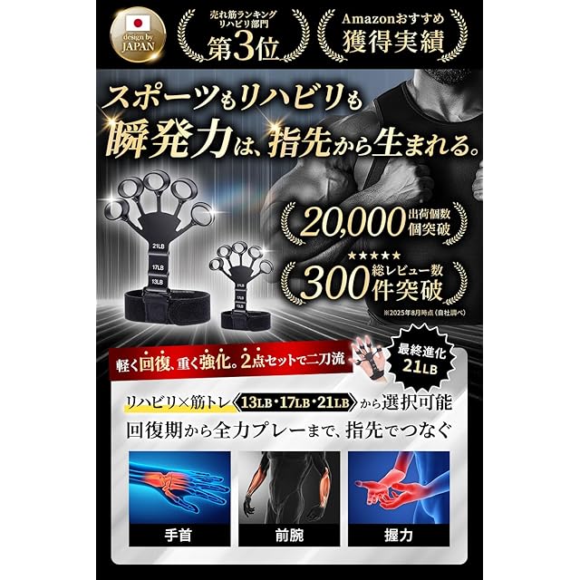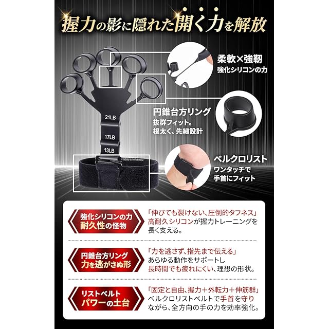 ✅【握力×ストレッチで、鍛える&癒す】 パワーフィンガーは、指・手首・前腕の筋力強化に加え、トレーニング後の“リラックス効果”もサポート。 選べる強度レベルで、目的に合わせた効果的なトレーニングが可能。 指のストレッチから本格的な握力強化まで、これ一つで幅広く対応。 ──ただ鍛えるだけじゃない。整えて、癒して、パフォーマンスアップへ。