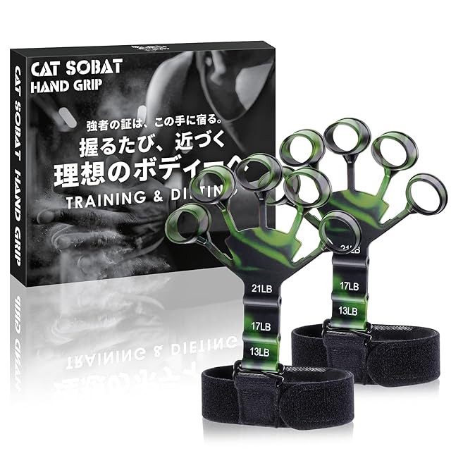 商品名:Catsobat ハンドグリップ パワーフィンガーグリップ 2個セット 指トレ 握力 トレーニング 人間工学に基づいたデザイン 【メーカー30日付き】 (ブラックグリーン)