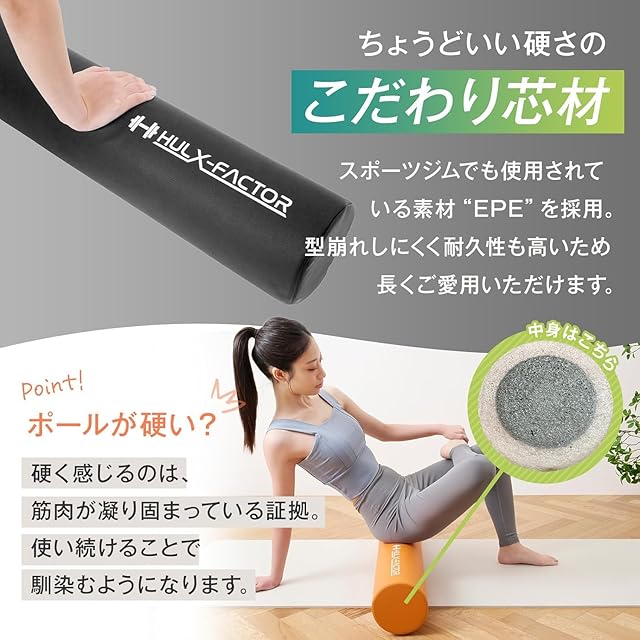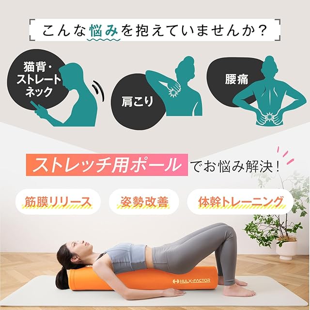✅ハルクファクターのストレッチ用ポール(エクササイズポール)は98cmのロングサイズ。男女問わず、無理なく上半身を載せることができます。