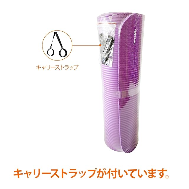 商品名:ベーシック ヨガマット 厚め 12mm キャリーストラップ付 トレーニングマット ストレッチマット ピラティスマット 188×61×1.2cm パープル