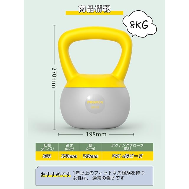 商品名:PROIRON ケトルベル 柔らかい 8kg kettlebell 鉄ビーズ砂鉄 充填