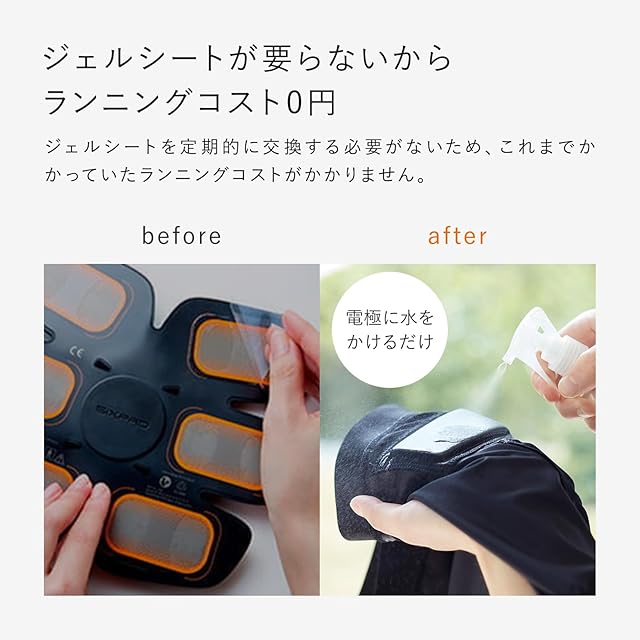 ジェルシートは不要で、経済的。 その秘密は、SIXPADのテクノロジーを結集した 画期的な布製電極「Eledyne」。 特殊加工を施した繊維を電極にすることにより、 わずかな水で、長時間通電が可能な「安定性」。 汗などの影響を受けにくく、安心して着用できる「安全性」。 劣化しにくく、自宅で洗濯して繰り返し使用できる「耐久性」。 この3つの力を兼ね備え、手軽で快適なトレーニングを実現しました。がずれにくいので、しっかりと電気刺激が伝わります。また、生地がとてもやわらかいため、着けていることを忘れるほどの心地よい肌ざわりを実感できます。