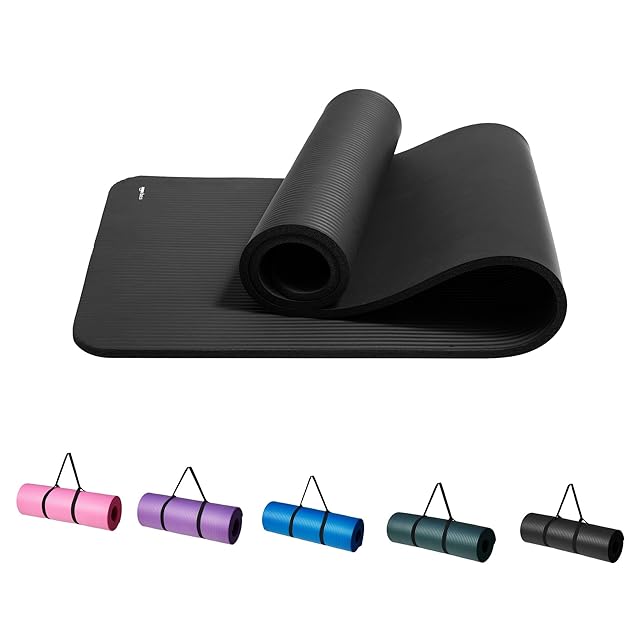 ベーシック ヨガマット 厚め 12mm キャリーストラップ付 トレーニングマット ストレッチマット ピラティスマット 188×61×1.2cm ブラック