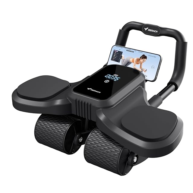 MERACH (メリック) 腹筋ローラー 4輪 LCDディスプレイ 自動スプリングバック スマートブレーキ type-c充電 スマホスタンド付き 膝マット付き 荷重200kg 組立簡単 静音 プロ 腹筋 ローラー 腹筋マシーン 腹筋マット アブローラー トレーニング エクササイズ ストレッチ ダイエット 筋トレ 器具 男性/女性 初心者/上級者 自宅 床傷つけない ブラック