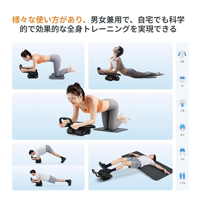 【自動スプリングバック・スマートブレーキ】この腹筋ローラーには自動リバウンド機能が搭載されており、手動で引き戻す手間が省け、トレーニング効率が向上し、初心者にも使いやすくなります。また、上級者が高強度のトレーニングをしたいというご要望に応じて、腹筋ローラーが前に転がる距離が大きいほど、蓄積された弾力が大きくなる設計を施しました。これにより、より強い抵抗を感じることができ、腹筋トレーニングの効果も期待できます。