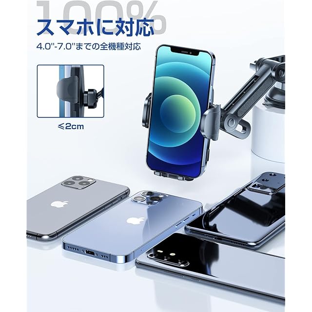 【幅広い互換性】携帯ホルダー 車は横幅6.5㎝-10.2㎝の端末に対応、iPhoneをはじめ、Galaxy、Huawei 、Google Xperiaなどの大型スマートフォンにも使用可能!ご注意:車 スマホホルダーにipadは取り付けられません。スマホホルダーの各部品も厳格なテストを完了しました。耐久性も安全性も全然心配ありません