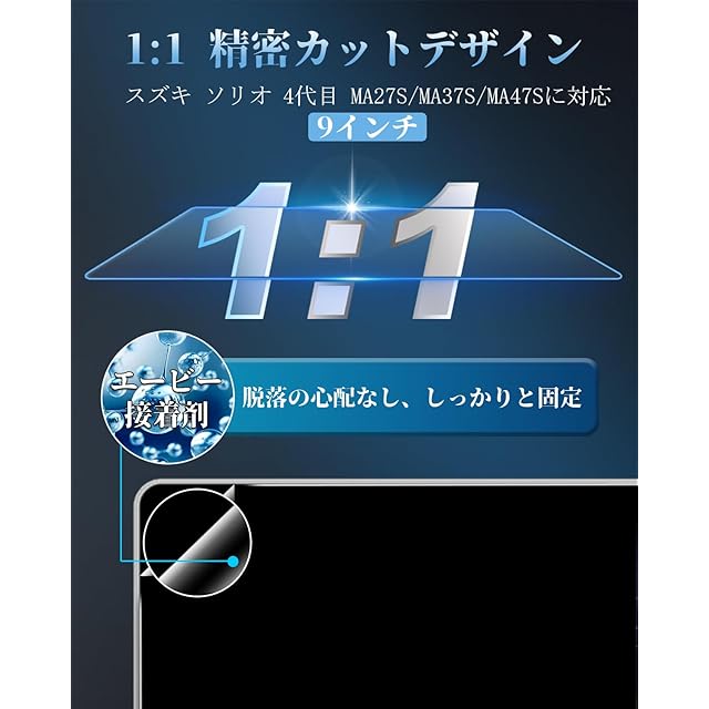 商品名:WEIPIN ガラス フィルム スズキ 新型 ソリオ MA37S MA27S MA47S MAD7S 専用 ナビ 保護フィルム ディスプレイオーディオ 9インチ カーナビ フィルム 9H 傷防止 汚れ防止 低反射 HD 高感度タッチ 自己吸着タイプ ソリオ バンディット アクセサリー 2020年~現行