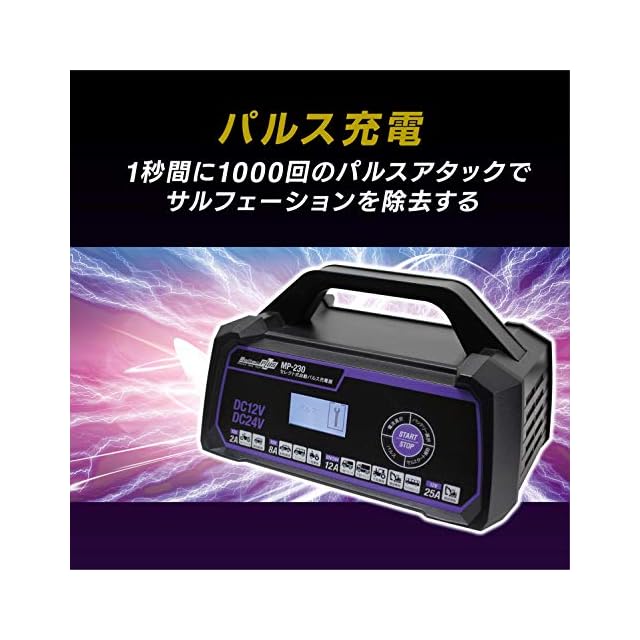 メルテック(meltec) バッテリー充電器 (バイク/普通車/大型車/トラック/建機) セレクト式自動パルスタイプ 12V/24V対応 MeltecPlus 定格25A バッテリー診断機能付 維持充電(トリクル充電)方式 AGM/ISS車充電可能 長期3年MP-230