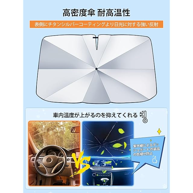 【2025改良型&車用サンシェード】INSGEER全く新しく先進的な炭素繊維の傘骨を採用し、十本のサブフレームを組み合わせることで、驚くほどの軽量化を実現しました。旧型に比べて、重量は 30% も軽くなり、持ち運びがはるかにラクになりました。また、耐衝撃性能は 50% も大幅に向上し、摩耗耐性は旧型の 2 倍以上にまで向上しています。長期間にわたって使用しても、開閉は依然としてスムーズで、常に新品同様の状態を保ち、長く愛車を風雨から守ります。