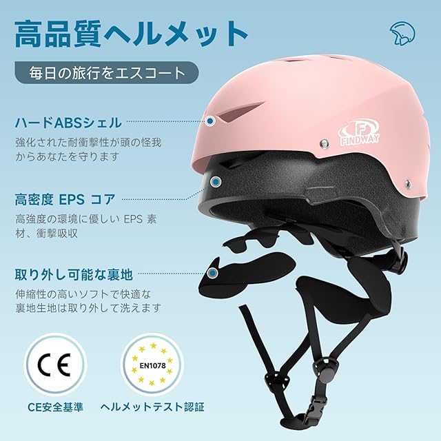 商品名:Findway 自転車 ヘルメット 子供/大人用 ヘルメット 子供 小学生 中学生 高校生 バイク ヘルメット CE認定品 3D保護 2セット衝撃吸収ライナー 耐衝撃 頭部保護 軽量 通気性 全方位調整可能 通学 通勤 スケートボード 運動用ヘルメット