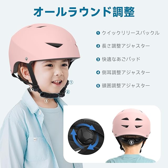 【3つのサイズ+フル調整】当社の自転車 ヘルメットは、大人、ティーン、子供用の3つのサイズをご用意しています。S:51 – 54cm(20 - 21.3 インチ)/ M:54 – 58cm(21.3 – 22.8 インチ)/ L:58 – 61cm(22.8 – 24インチ)。家族のお出かけやサイクリングに便利な選択肢を提供。調節可能なダイヤル バックルをひねってヘルメットの頭囲を変更できます。高度な 3-in-1 全方向調整システムにより、頭囲、あごストラップの長さ、あらゆる方向の微調整されたサイド ラグが可能になり、フィット感と快適な着用感を最大化します。あごストラップの長さは、肌に優しい調節可能なあごストラップで変更できます。側面の耳も、顔にフィットするように微調整できます。こどもと大人の顔がぴったりフィットします。