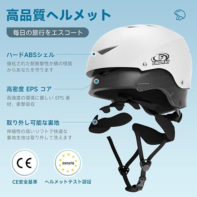 【CEの安全認証 + アジア特有のデザイン】Findway自転車スケートボードヘルメットはCE安全基準のEN 1078 最高の安全認証に合格し、安全を提供します。アジア人向けに特別に設計されたヘルメット、新しい内部構造設計、柔らかく軽量、頭頂部に圧力をかけず、日本人の頭の形にぴったりとフィットし、非常に快適に着用でき、快適で安全な体験をもたらします!