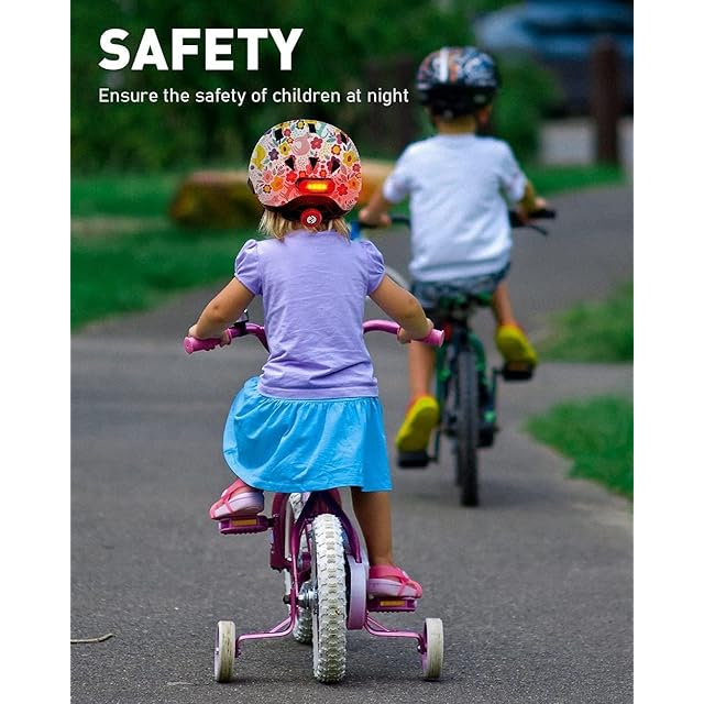 4-8歳子供用ヘルメット 幼児/低学年児童 小学1-2年生 軽量 ASTM & CPSC認証済み 安全 自転車/スクーター用,ライト付き,猫, S(子供)