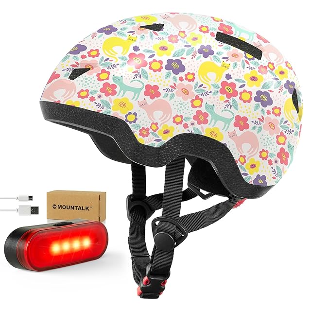 4-8歳子供用ヘルメット 幼児/低学年児童 小学1-2年生 軽量 ASTM & CPSC認証済み 安全 自転車/スクーター用,ライト付き,猫, S(子供)