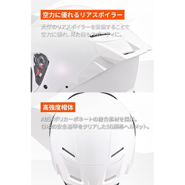 ABS+PC複合素材の高強度帽体で安全性が高く、SG規格を取得