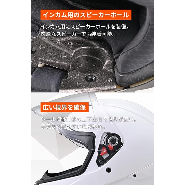 標準装備:PINLOCKシート(曇らないシールド) / スピーカーホール(肉厚なスピーカーにも対応)