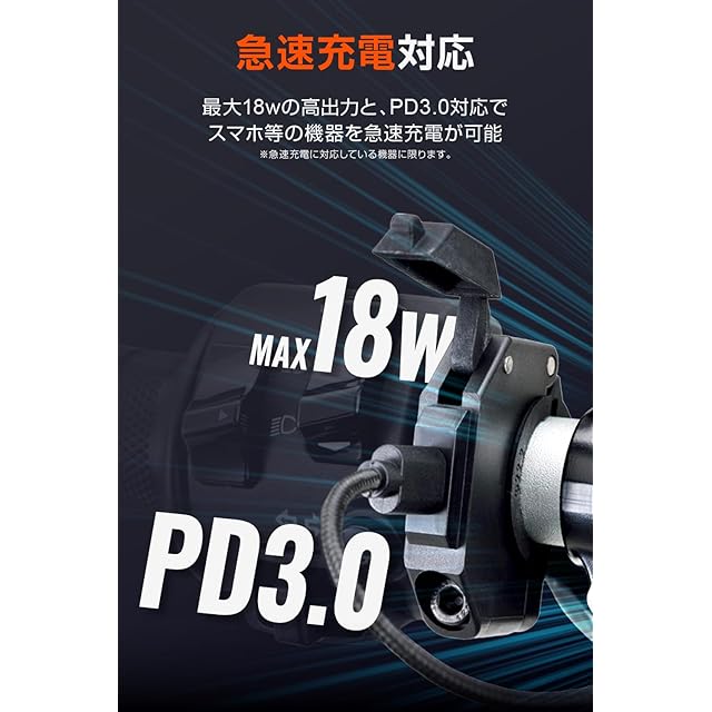 【仕様1】 PD(パワーデリバリー)3.0対応で、スマートフォンの急速充電が可能。MAX18Wの高出力。