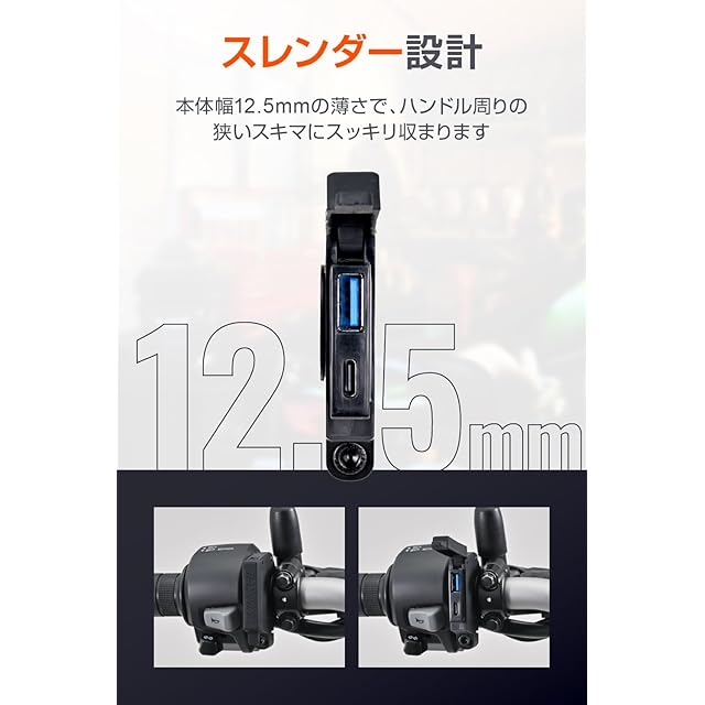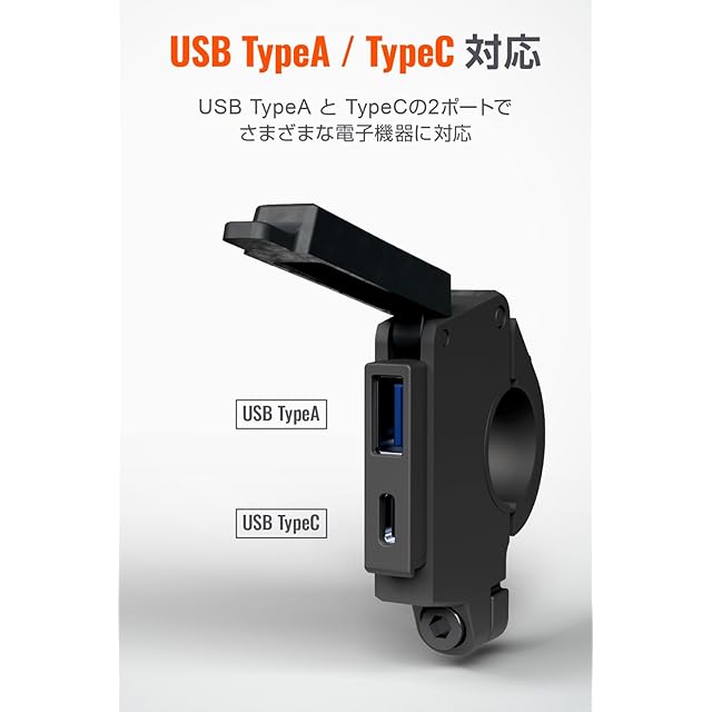 バイク専用電源USB Type-A+Type-C。2ポートでさまざまな電子機器に対応