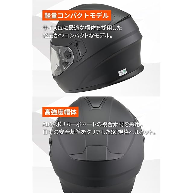 ABS+PC複合素材の高強度帽体で安全性が高く、SG規格を取得