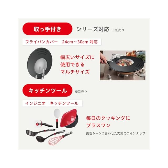 素材・材質:本体/アルミニウム合金・底/アルミニウム合金+ステンレス鋼(クロム16%)・取っ手/フェノール樹脂・加工/チタン・インテンス(内面)・ふっ素樹脂塗膜加工(外面)、生産国:フランス